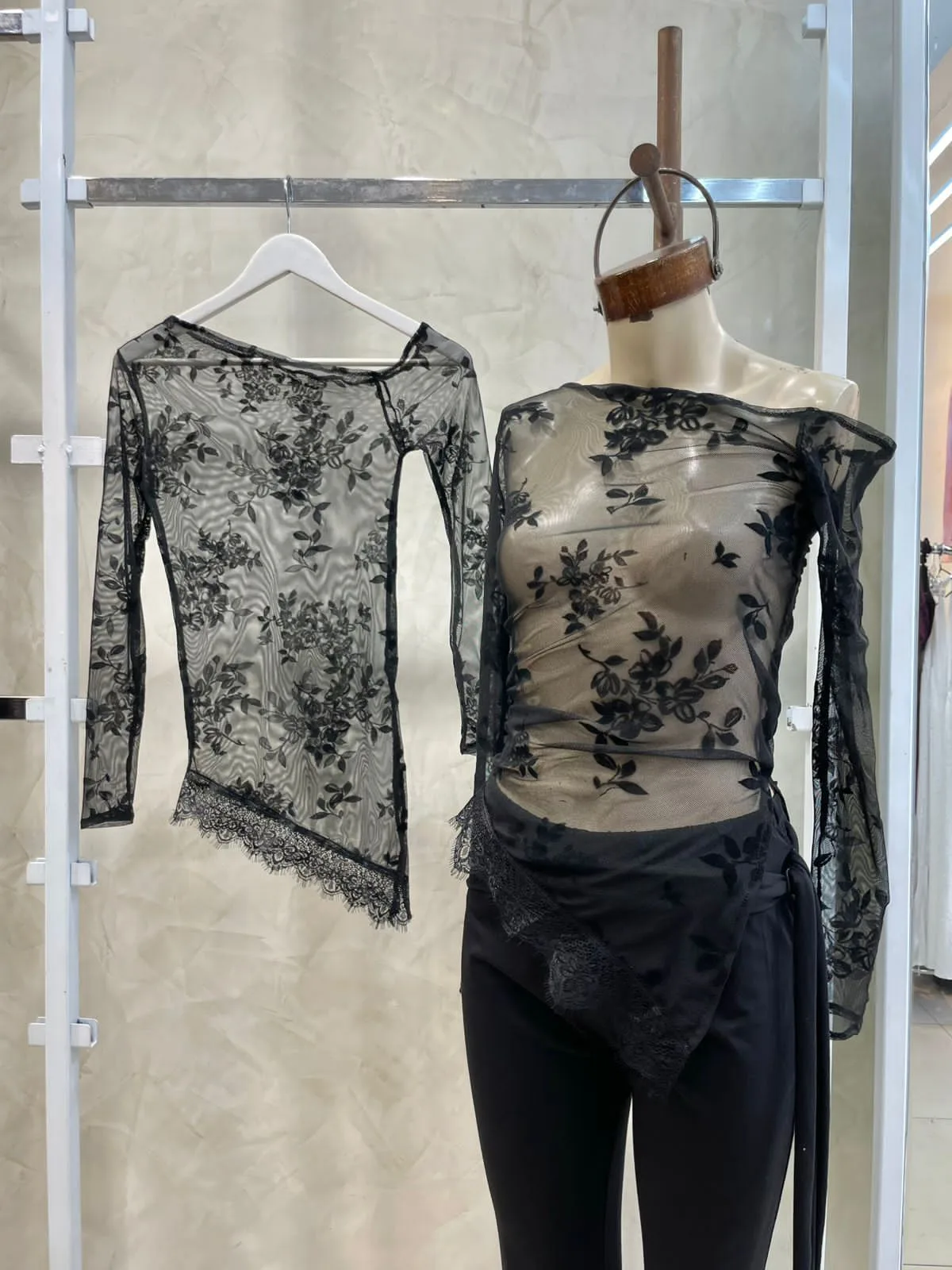 Remera manga larga (tull bordado)